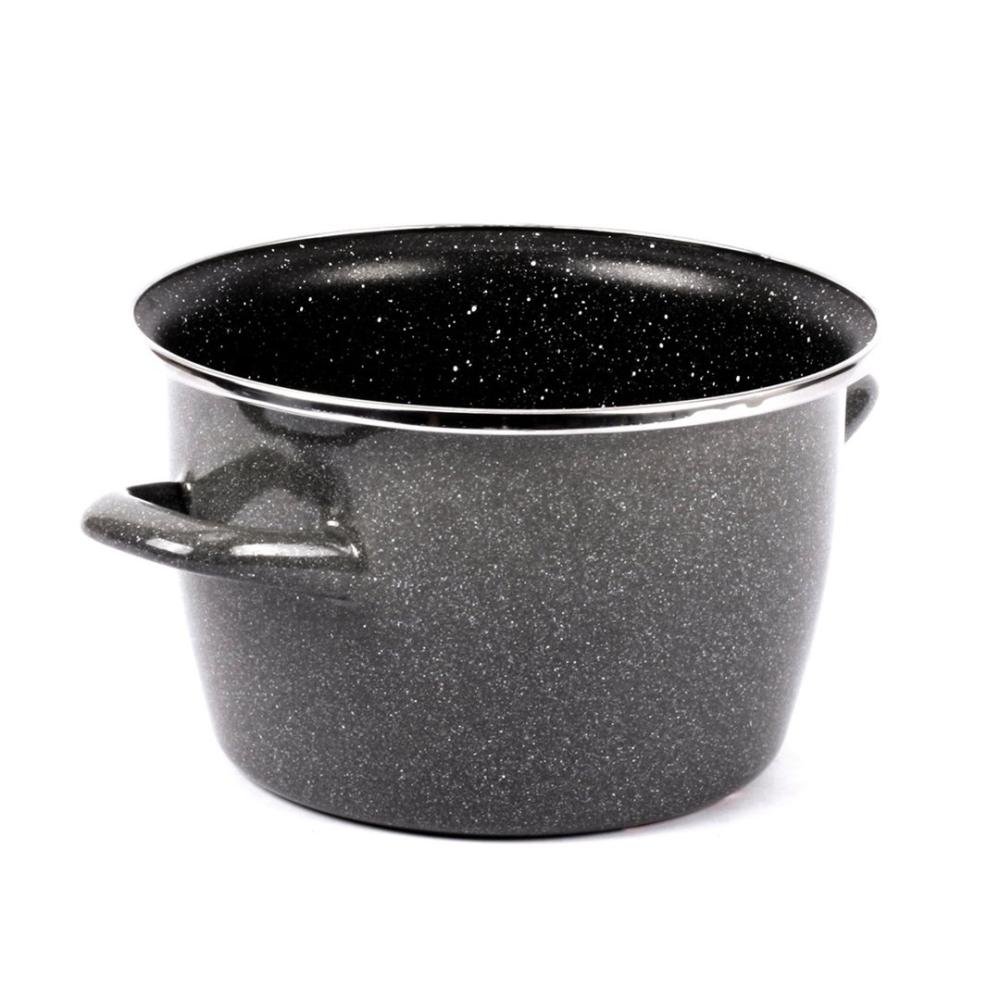VITRINOR LONEC linije K2 s premerom 16 cm je lep in eleganten izdelek z dvojnim ročajem. Izdelan je v Španiji iz trpežnega in kakovostnega emajliranega jekla, ki izpolnjuje vse zahteve glede kakovosti in ne vpliva na okus hrane. Prednost posode iz emajliranega jekla je predvsem njena učinkovitost, saj za kuhanje potrebuje do 30 % manj toplotne energije v primerjavi s posodo iz drugih materialov. Prevlečen je s kamnito oblogo (brez PFOA), ki preprečuje prijemanje hrane. Premaz proti prijemanju z granitnimi sekanci presega konkurenco s teflonskimi in keramičnimi premazi. Zunanjost je prevlečena z dvema slojema sivega emajla, ki ji dajeta lesk in eleganten videz ter jo varujeta pred mehanskimi in kemičnimi poškodbami. Primerna je za uporabo na vseh kuhalnih površinah, tudi indukciji.
