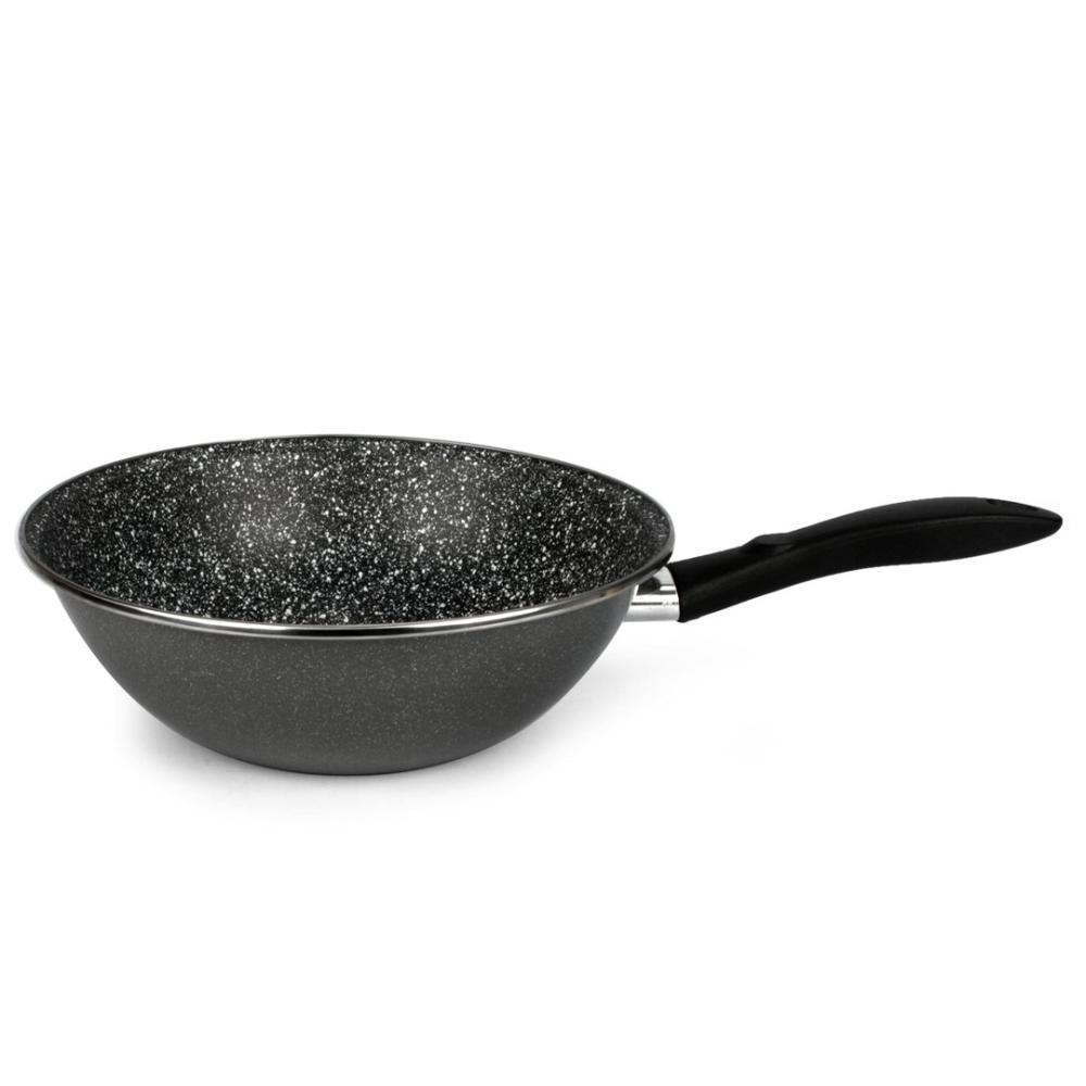Notranjost je prevlečena s kamnito prevleko (brez PFOA), ki preprečuje prijemanje hrane, na zunanjost pa sta nanešena dva sloja sivega emajla, ki poudarjata lesk in eleganten videz ter vok varujeta pred mehanskimi in kemičnimi poškodbami. Premaz proti prijemanju z granitnimi sekanci presega konkurenco s teflonskimi in keramičnimi premazi. Primeren je za uporabo na vseh kuhalnih površinah, tudi indukciji.