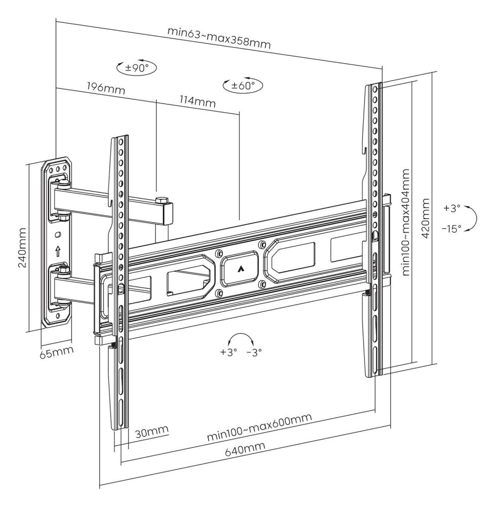 Manhattan Stenski TV nosilec roka 37''-70'' , 35kg, enojna roka, naklon +10 do -15°, črne barve
