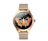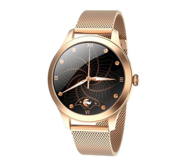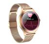Ura Maxcom FW42 je bila ustvarjena za ženske, ki želijo biti v trendu, hkrati pa želijo ohraniti svoj individualni slog. Ta edinstvena pametna ura vam bo omogočila, da poudarite svoj šarm in eleganco.Ohišje je iz nerjavečega jekla in ženstvena oblika bodo navdušili vse, ki bodo pogledali na vaše zapestje. Popolnoma zatesnjeno ohišje omogoča plavanje in kopanje z uro, zmogljiva baterija pa omogoča neprekinjeno uporabo do 15 dni v načinu mirovanja ali do 5 dni intenzivne uporabe. 1,09-palčni barvni zaslon na dotik z ločljivostjo HD 240*240 slikovnih pik zagotavlja visokokakovostno grafiko in eleganten videz ter priročno upravljanje naprave. Za razliko od ostalih pametnih ur ima FW42 sferični zaslon. Športni podatki se beležijo 24 ur na dan, športne načine pa lahko poljubno preklapljate za različne športe. FW42 ima tudi številne druge uporabne funkcije, kot so pedometer, števec kalorij in opozorilo na mirovanje. Naprava z najsodobnejšimi senzorji omogoča neprekinjeno spremljanje zdravstvenih funkcij. Optični zapestni senzor spremlja srčni utrip, oksimetrijo in krvni tlak, ne da bi bilo treba nositi prsni trak s senzorjem. Podatke si lahko ogledate v realnem času na uri ali v aplikaciji. Z vgrajenim merilnikom pospeška in merilnikom srčnega utripa lahko spremljate svoj spanec. Ura vam bo pokazala, koliko časa je trajala faza globokega spanja in koliko plitkega, kakšen srčni utrip je bil značilen za vsako fazo in kdaj se je zgodil trenutek prebujanja. Slednje ima presenetljivo velik vpliv na kakovost vašega spanca. FW42 je vaš zaveznik pri ohranjanju dobrih spalnih navad. Ura ima poleg številnih funkcij, namenjenih spremljanju dejavnosti, razvita tudi za področje dobrega počutja. To je prikimavanje ženskemu delu uporabnikov. Brez tveganja lahko spremljate svoje plodne dneve ali nasprotno in menstruacijo. Ura je povezljiva z Android ali iOS in omogoča sprejemanje obvestil aplikacij, sporočil SMS in informacij o dohodnih klicih.