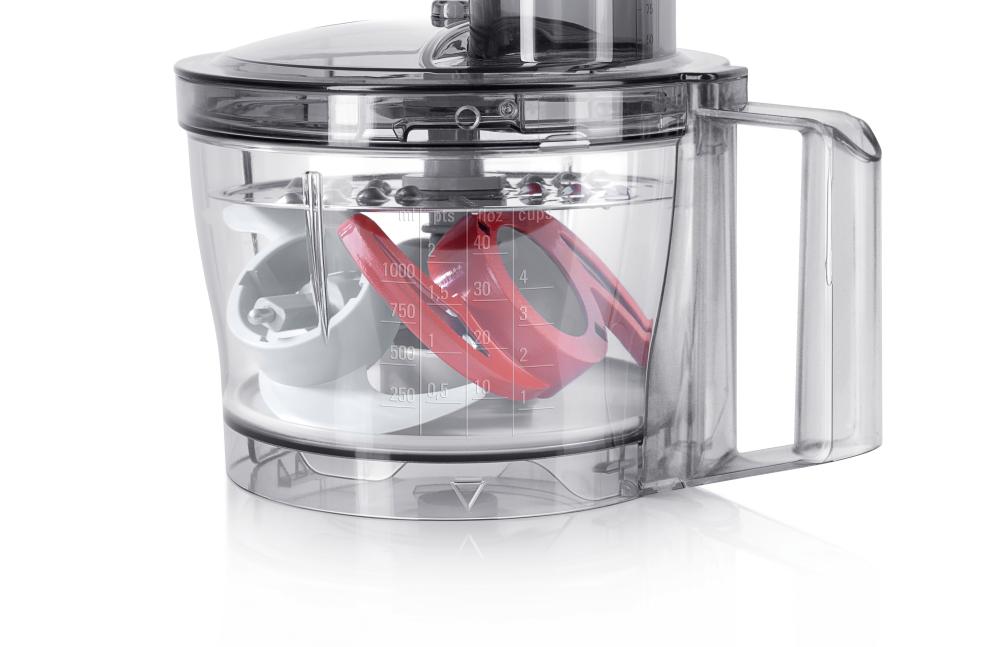 - 2.3 l prozorna plastična posoda za 500 g moke + dodatki (maks. količina testa 0.8 kg) vključno s pokrovom z odprtino za dodajanje sestavin
