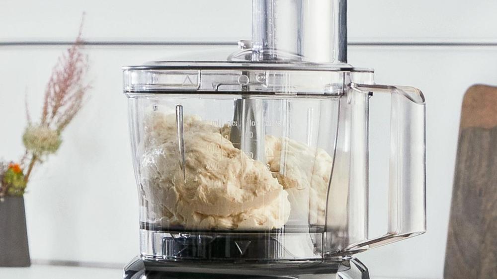 - 2.3 l prozorna plastična posoda za 500 g moke + dodatki (maks. količina testa 0.8 kg) vključno s pokrovom z odprtino za dodajanje sestavin