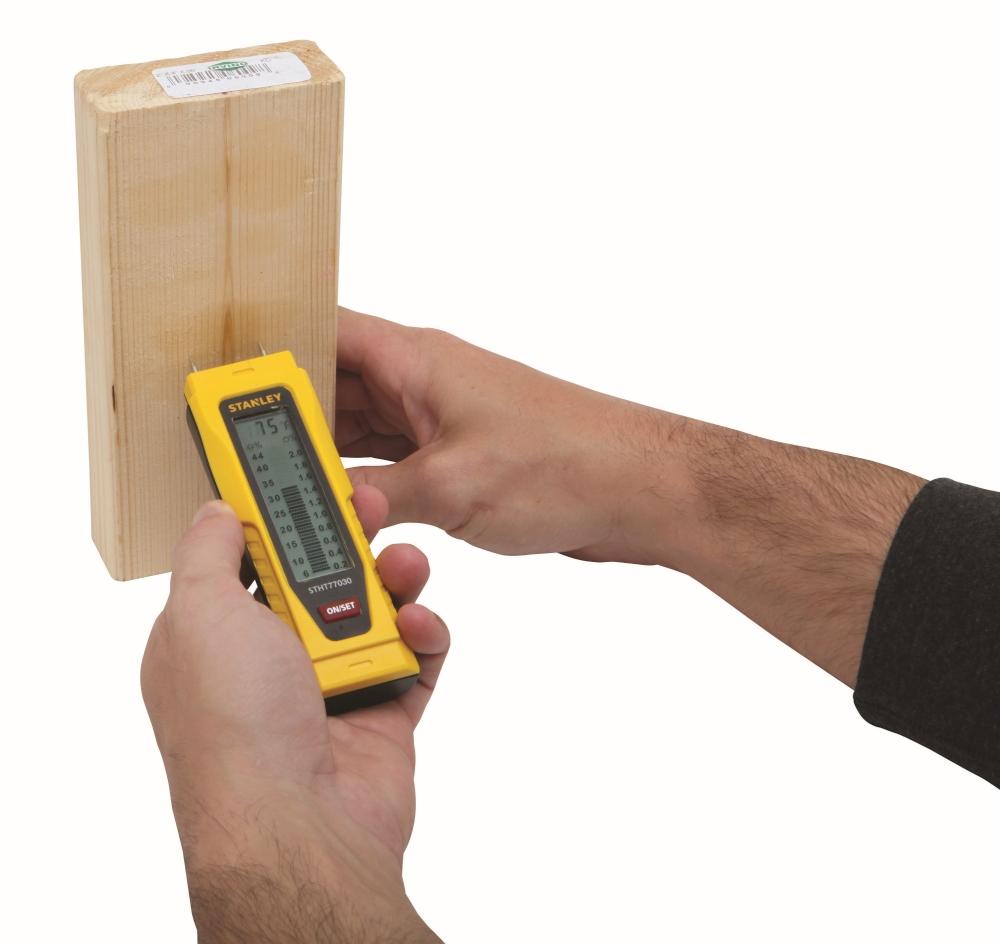 Merilnik vlage - za testiranje nivoja vlage v lesu, ometih, opekah in zidovih - dve 8 mm igli za zaznavanje z zaščitno prevleko - osvetlje LED zaslon - stolpični diagram za odčitavanje nivoja vlažnosti - samodejni izklop za daljšo življenjsko dobo baterije - vključuje torbico z zanko za pas