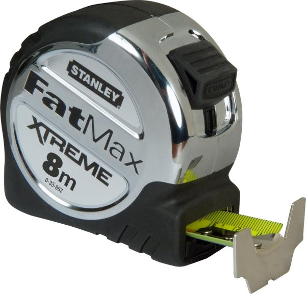Stanley Fatmax tračni meter8 m - Širina traku 32 mm omogoča enostavno branje številk. Za merjenje ne potrebujemo pomoči, kljub možnosti izvleka metra do 4 m - Zaponka za pas - Ergonomski, kovinski, biomaterial - Standard točnosti: II. razred - Končni kavelj zaradi nulte pozicije omogoča natančne zunanje in notranje meritve - 3 kratno zakovan, končni kavelj je do 40% močnejši - Mylar obložen trak je do 10-krat bolj odporen na odrgnine kot običajni lakirani trakovi - Antikorozijska zaščita traku
