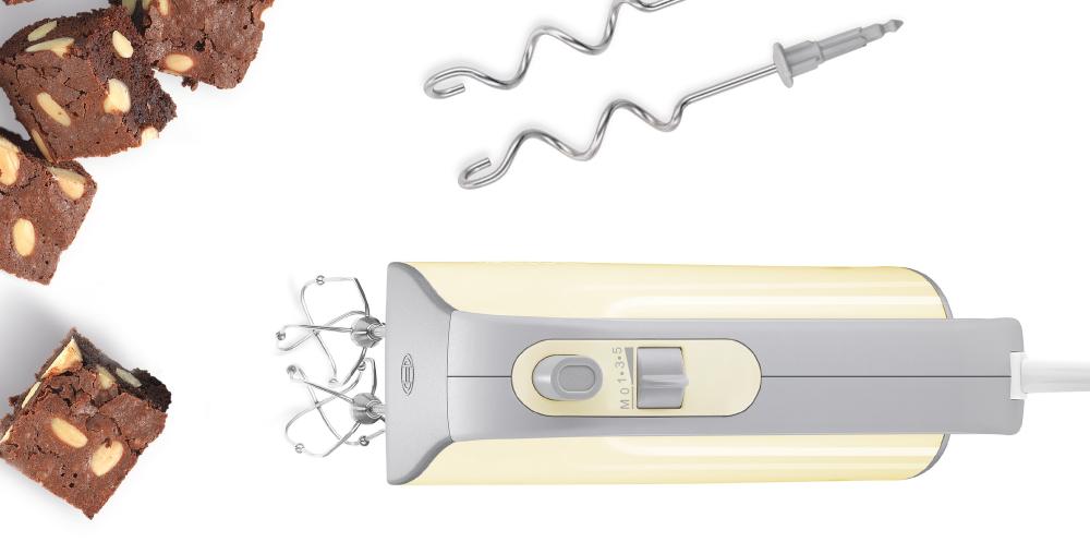 Stilski ročni mešalnik za zahtevne stranke, z inovativnimi metlicami FineCreamer v vanilija barvi.