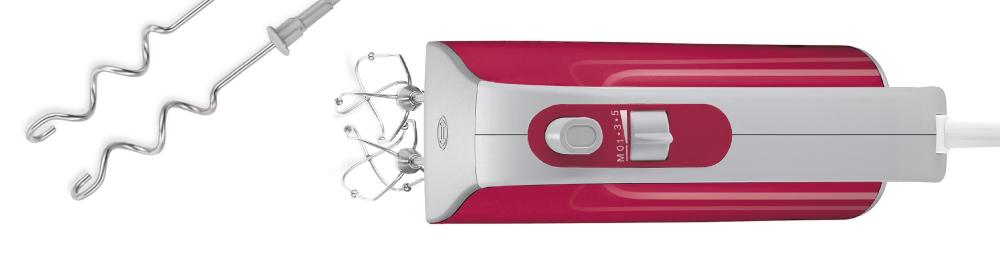 Stilski ročni mešalnik za zahtevne stranke z inovativnima metlicama FineCreamer v rdeči barvi.