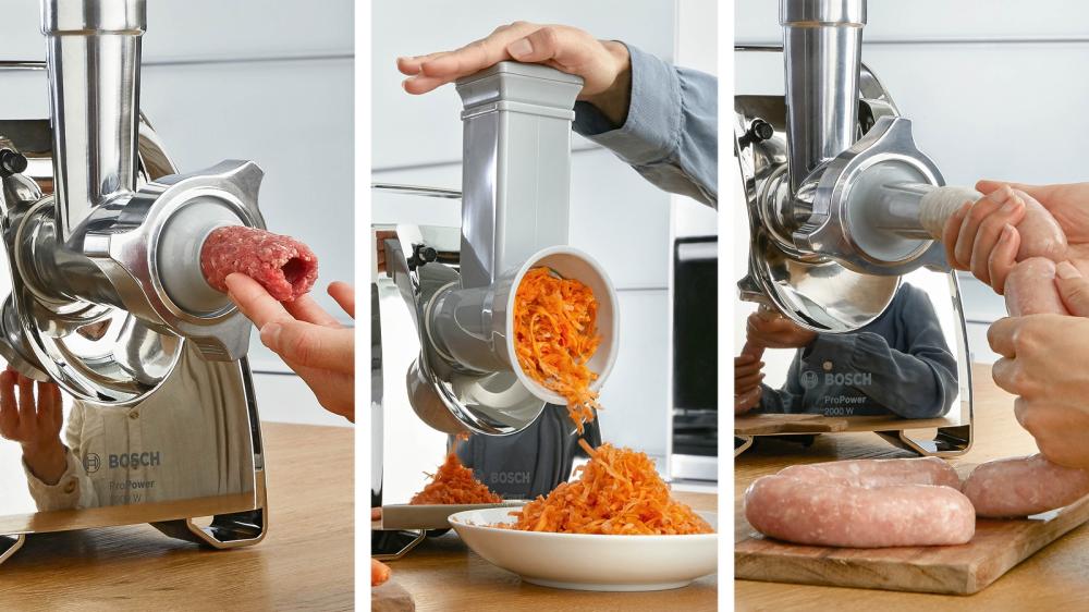 Zmogljiv aparat za mletje mesa za hitro in zanesljivo vsakodnevno predelovanje, prilagodljiv z več kot 10 funkcijami.