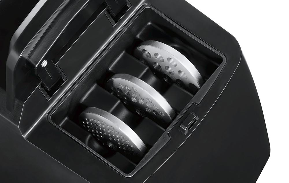 - Velika reža za dodajanje sestavin, priročno tlačilo