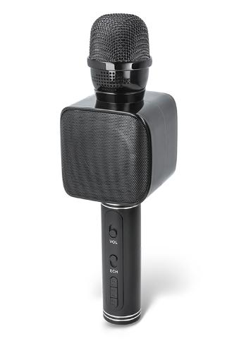 Mikrofon črne barve z vgrajenim Bluetooth zvočnikom omogoča poslušanje glasbe in petja istočasno! Vpeljite se v svet petja s pomočjo mikrofona za karaoke.