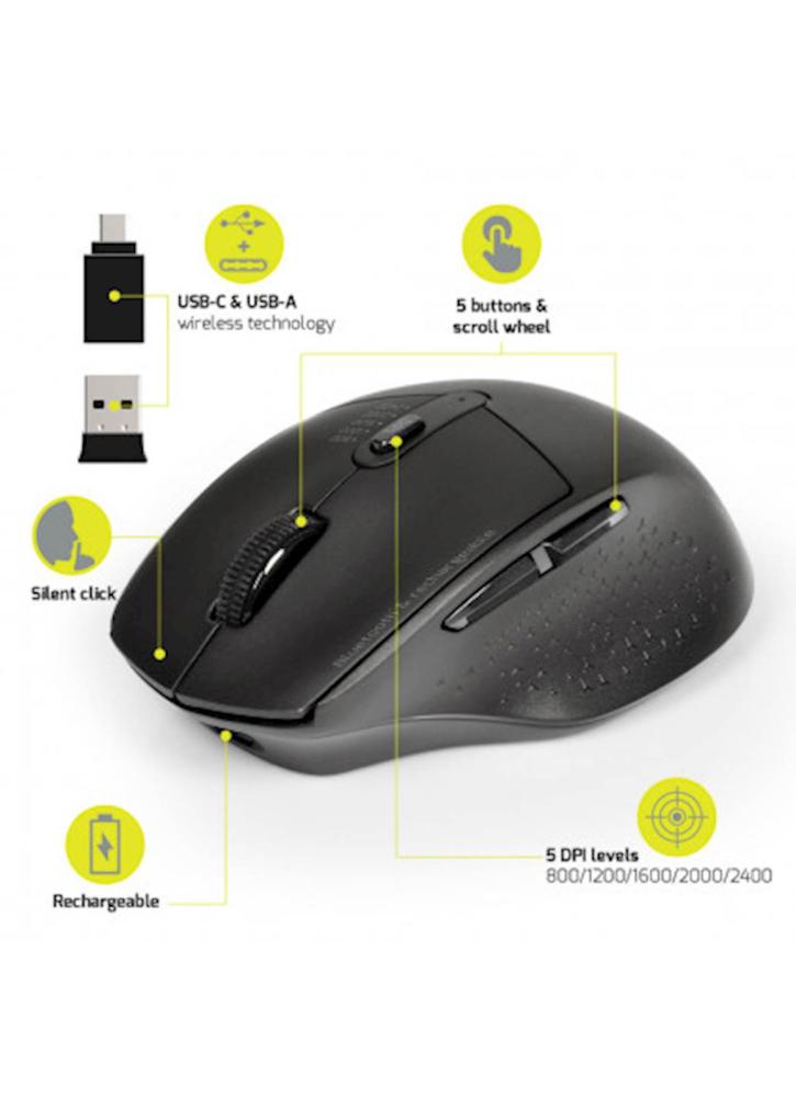 Polnilna brezžična miška z dvojno, 2.4GHz ali Bluetooth, povezljivostjo. Pet nastavljivih stopenj hitrosti omogoča optimalno natančnost. Brezžična tehnologija 2.4GHz ponuja svobodo gibanja do 20 metrov in do 10 metrov Bluetooth povezava. Združljiva je s sistemom Windows, Mac OS, Chrome OS in Android.