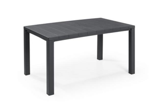 Ravne linije in videz - struktura lesa je glavna prednost funkcionalne jedilne mize Julie. Zelo enostavna za sestavljanje in še bolj za čiščenje. Odporna je na neugodne vremenske razmere in UV žarke. Dimenzije 147 x 90 x 74,5 cm, masa 12,12 kg.