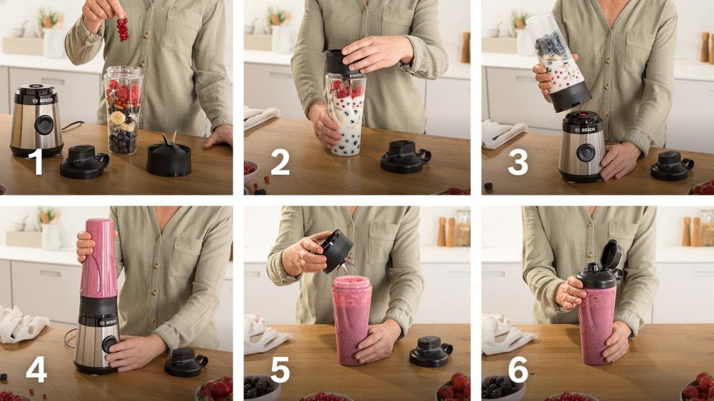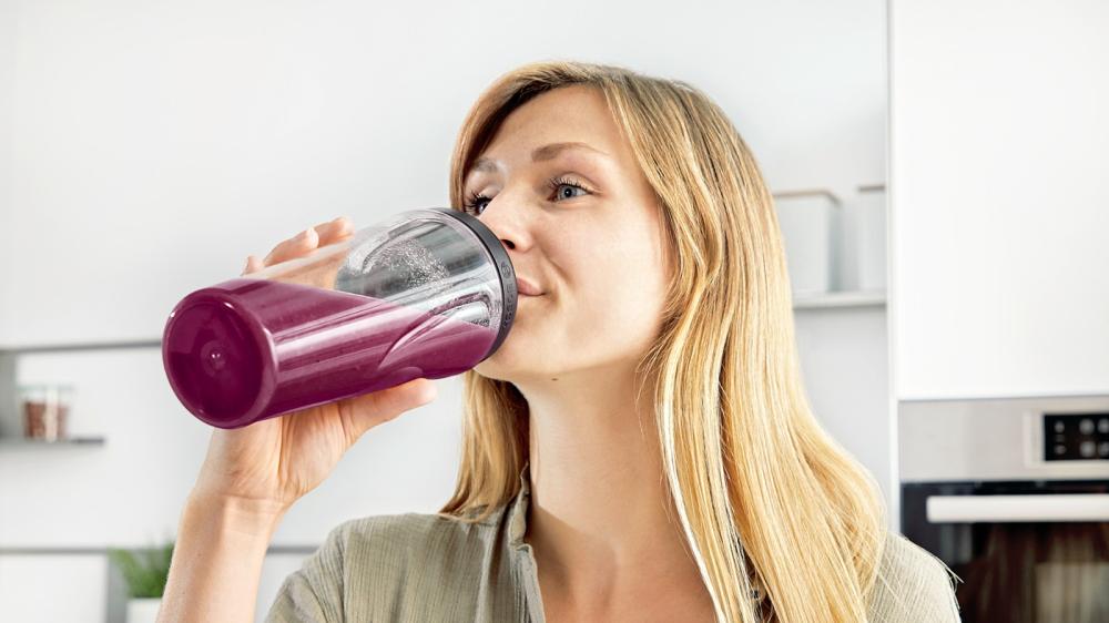 Kompakten in močan mini mešalnik z neprepustno steklenico Tritan To-Go in ohišjem iz nerjavečega jekla. Uživajte v zdravih napitkov smoothie brez koščkov zahvaljujoč mešanju na visoki hitrosti.