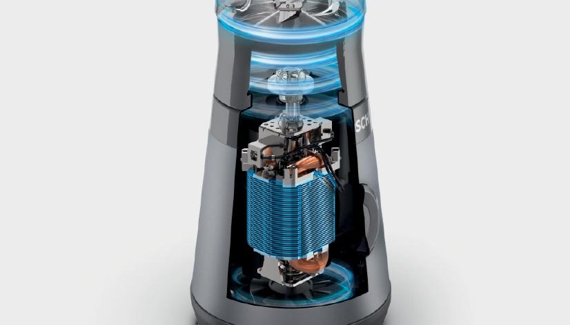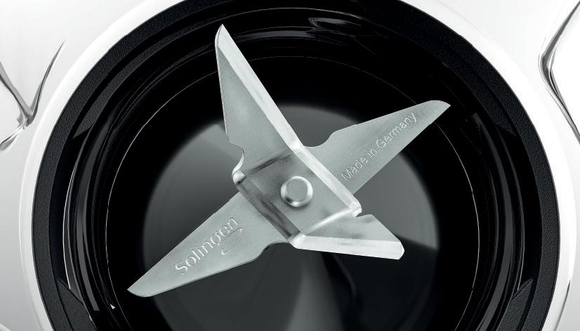 - Visoko zmogljiv motor s 450 vati in hitrostjo motorja do 40.000 vrt/min. Primeren tudi za mešanje trdih sestavin in leda.