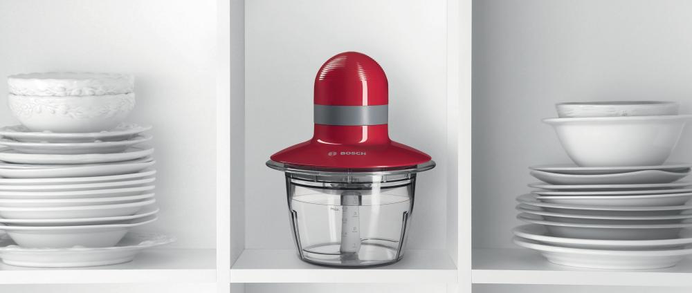 Rdeč kompakten univerzalen sekljalnik vam zaradi hitrega sekljanja in mešanja prihrani dragocen čas