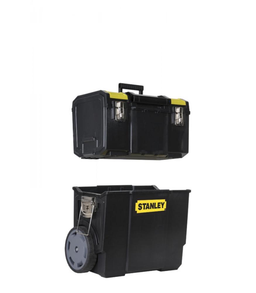 Stabley mobilna delavnica 3V1 - Snemljiva zgornja kaseta s shranjevanjem majhnih delov na vrhnji strani - Snemljiv srednji del za majhne dele in pripomočke - Spodnji zaboj z velikimi 7" kolesi - Ročaj na vrhu omogoča lažje manevriranje - Široki zapahi iz kovine povezujejo posamezne enote - Velika prostornina za shranjevanje električnega orodja, ročnega orodja, majhnih delov in pripomočkov - Snemljiv pladenj za orodje, ki ga trenutno potrebujete
