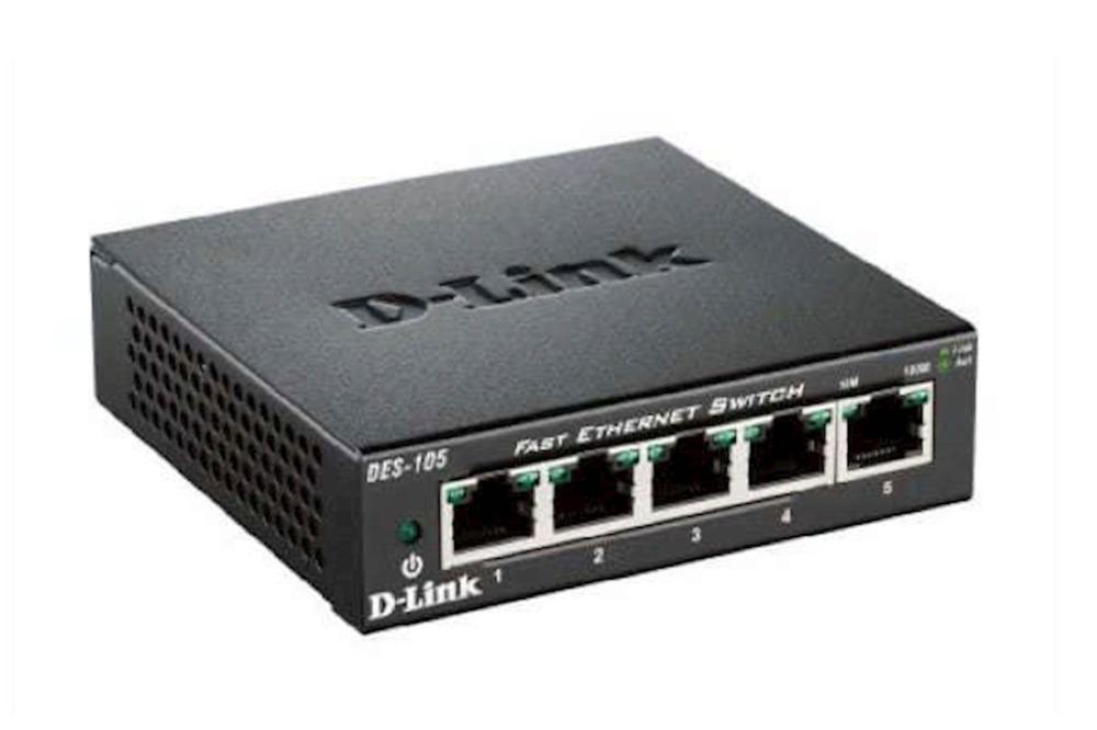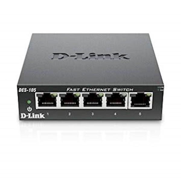 DES-105 5-Port Fast Ethernet nenadzorovano namizno stikalo je 5-vratno 10/100 Mbps Fast Ethernet stikalo, ki vam omogoča hitro nastavitev žičnega omrežja. Priključite DES-105 na več računalnikov, da si izmenjate datoteke in mape, ali pa ga povežite z usmerjevalnikom za skupno rabo internetne povezave.