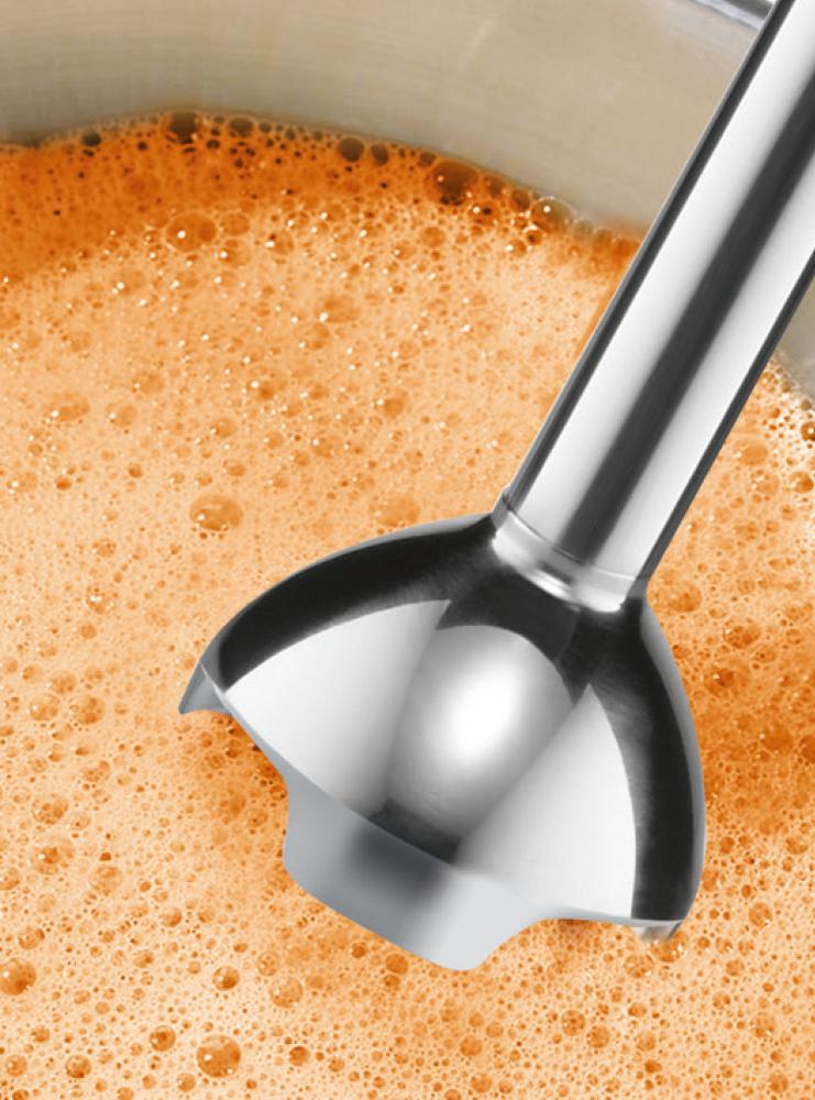 - Visoko kakovostna mešalna noga iz nerjavečega jekla je varna za živila, nevtralna okusa in se ne razbarva. Idealna za pripravo korenčkove ali paradižnikove juhe
