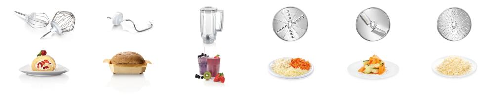 - Sekljalnik s 3 ploščami (plošča za rezanje, plošča za drobljenje, plošča za ribanje)