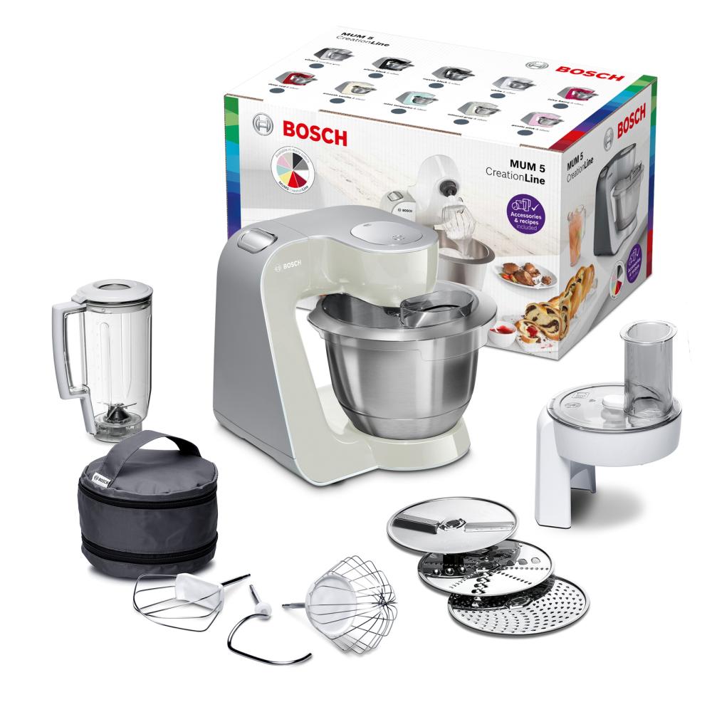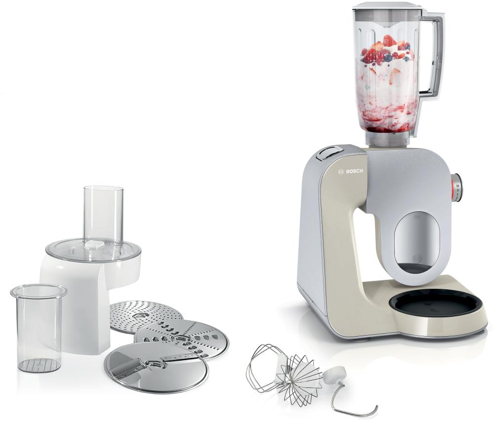 Zmogljiv kuhinjski robot (mineralno siva / srebrna barva) za vsestransko kuhanje in pečenje.