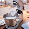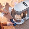 - Posebno velika mešalna posoda iz nerjavečega jekla s prostornino 5.5 l in dvema ročajema za enostavno uporabo za do 3.5 kg biskvita ali 1.5 kg moke plus dodatki za kvašeno testo