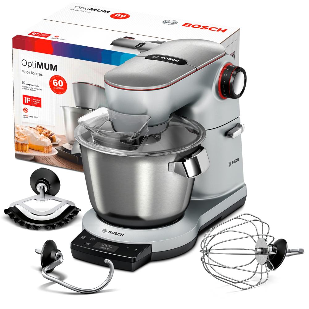 Kuhinjski robot OptiMUM vitke in elegantne oblike. Odlični rezultati z vgrajeno tehtnico, samodejnimi programi SensorControl Plus in 1600 W motorjem.