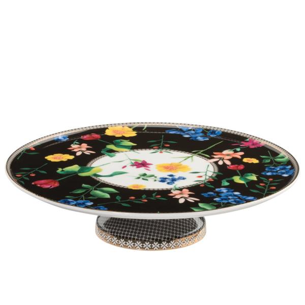 MW OKROGEL SERVIRNI KROŽNIK NA PODSTAVKU CONTESSA s premerom 30 cm je primeren za serviranje sladic, služi pa lahko tudi kot stojalo za torto. Izdelan je iz trpežnega porcelana, ki je okrašen s cvetličnim motivom ter dekadentnimi zlatimi detajli. Pomijte ga ročno.