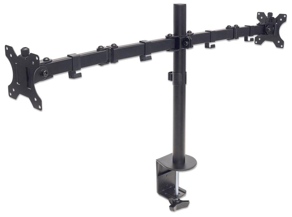 Manhattan Namizni nosilec za 2 monitorja 13''-32'' , 8kg, tro sklepni, naklon ±45°, črne barve