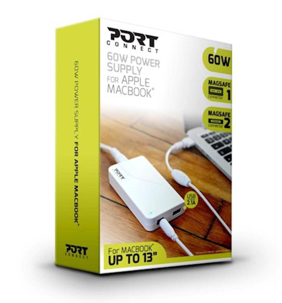 Napajalnik PORT za prenosne računalnike Apple Macbook & Macbook Pro 11/12/13". Priložen konektor za priklop s pomočjo magneta (MagSafe generacija 1 in 2). Tanka in kompaktna oblika.