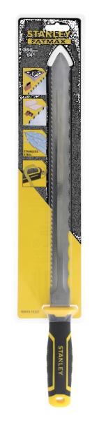 Stanley Fatmax 350 cm nož za rezanje izolacije Rezilni list iz nerjavečega jekla za trajnost in odpornost proti rjavenju Dolžina 350mm, debelina 2mm Oprijem z 2 vrsti materiala, za udobnost in močan prijem Nazobljena oba roba rezila