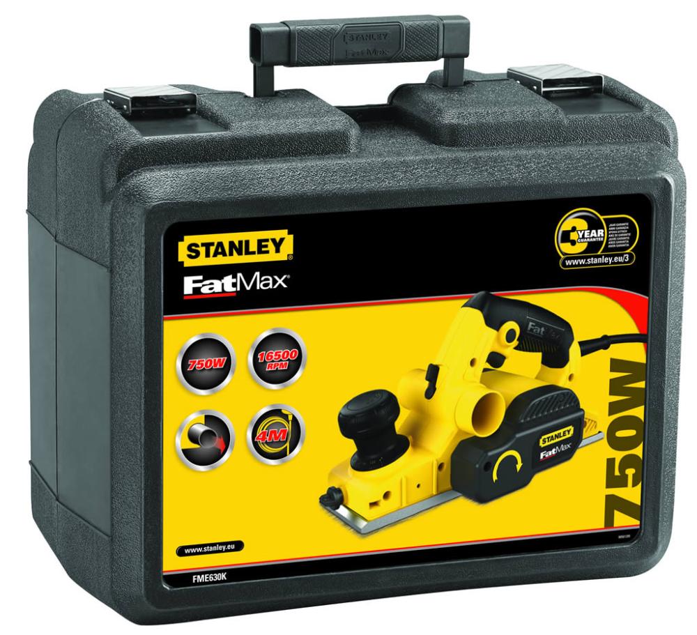 Oblič Stanley Fatmax FME630K je zmogljiv 750 W oblič z obojestranskim rezilom in možnostjo namestitve vrečke za prah na eni ali drugi strani. Ima tudi prilagodljivo nastavitev globine oblanja in možnost oblanja utora. Odlikuje ga ergonomsko oblikovan in gumiran ročaj za udobno in varno delo. Ima 4 m dolg kabel. V opremi je paralelno vodilo, nastavek za priklop sistema odvajanja prahu, vrečka za prah in kovček za varen transport in shranjevanje. Lastnosti: - moč: 750 W - hitrost: 16.500 /min - širina rezila: 82 mm - največja globina: 0-2 mm (stopnje po 0,2 mm) - globina utora: 0-12 mm - št. nastavitev globine: 3 - masa: 3,0 kg