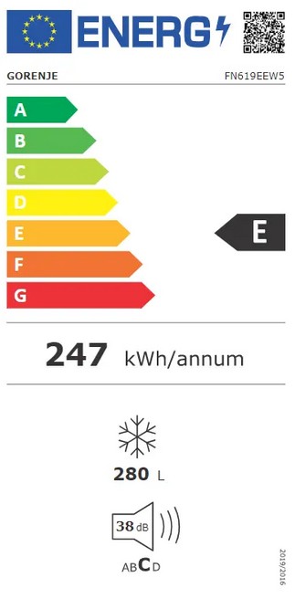 Gorenje FN619EEW5 zamrzovalna omara ponuja 280 litrov prostornine in se uvršča v E energijski razred učinkovitosti. S sistemom NoFrost omogoča odstranjevanje vlage iz zamrzovalne omare. Vpliva na to da se živila med seboj ne sprimejo, ob enem pa omogoča odlično preglednost.
