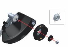 - pri menjavi vstavite novo najlonsko nitko z zunanje strani v tuljavo skozi odprtino v ohišju, notranja tuljava samodejno pritrdi nitko