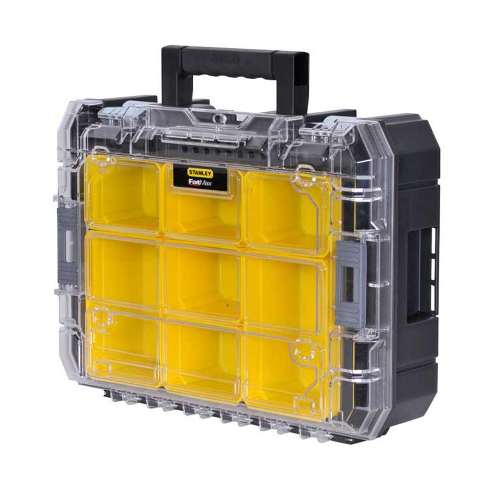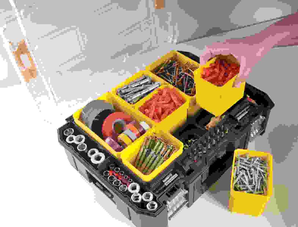 Organizator za orodje in pribor Stanley TSTAK V FMST1-71970 je kakovostna in trpežna kaseta za shranjevanje in organiziranje delovnih pripomočkov. Stranski zapahi omogočajo varno sestavljanje in združevanje enot v sistemu TSTAK. Organizator ima tudi snemljive posodice za shranjevanje - 2 večji in 5 manjših za popolno organiziranost. Prozoren pokrov je trpežen in odporen na udarce, kovinski zapahi in tečaji pa močni in zanesljivi. Dimenzije: 44 14,5 33,2 cm