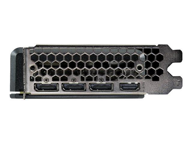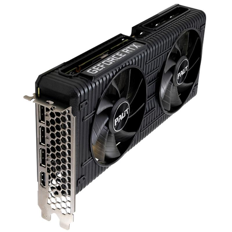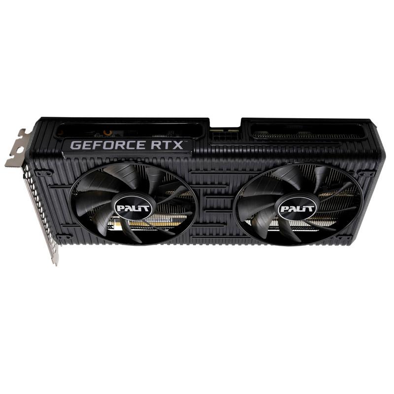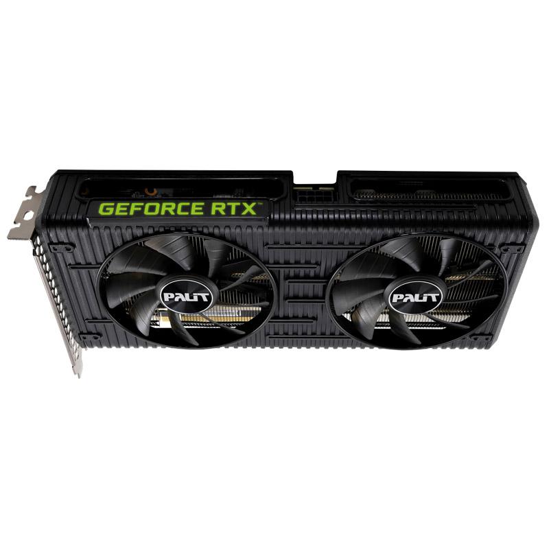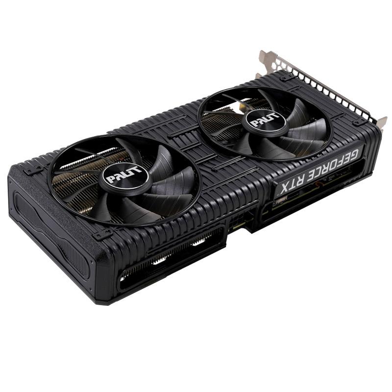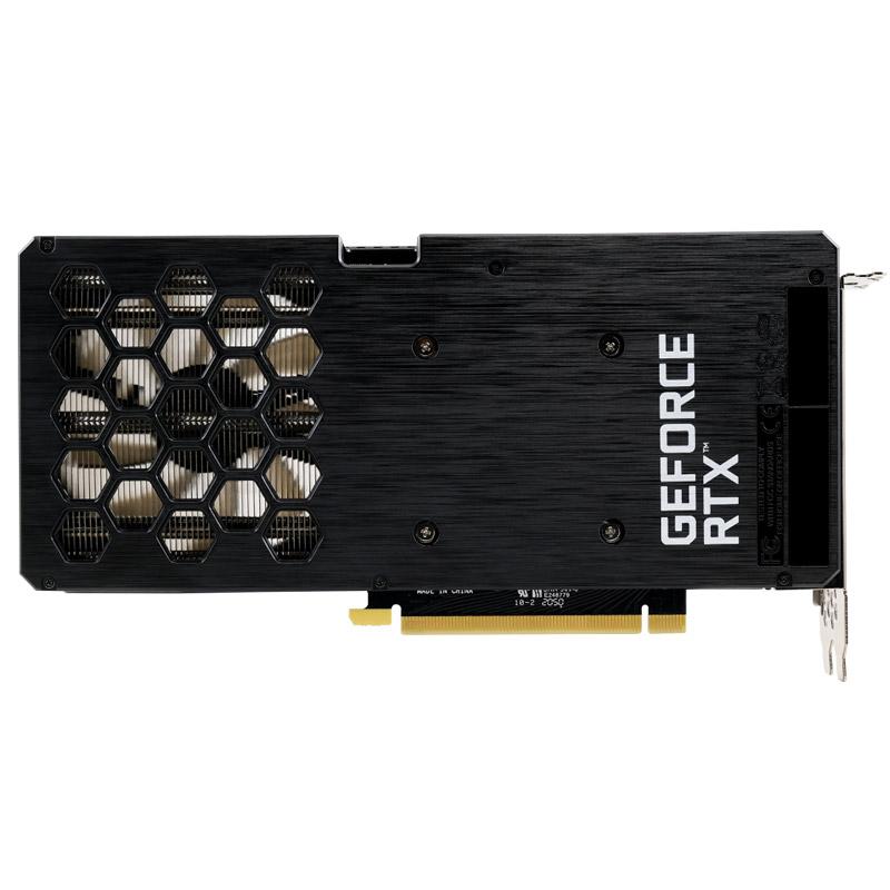Palit GeForce RTX 3050 Dual Series ima dva 90 mm velika ventilatorja za učinkovito hlajenje in veliko območje reza na zadnji plošči za optimizirano toplotno prezračevanje. Prilagodljiva osvetlitev RGB je okrašena tudi na strani ohišja, da lahko igralci uživajo v minimalističnih svetlobnih učinkih.