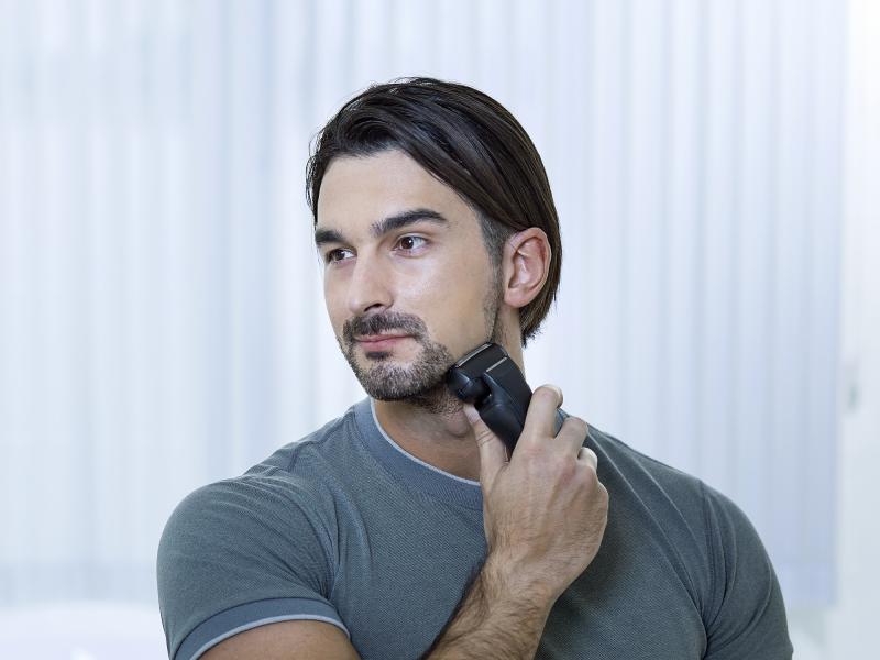 Rezilo prirezovalnika pod ostrim kotom 45° zagotavlja nezahtevno pripravo na britje ter preprosto natančno prirezovanje zalizkov in brkov. Uživajte v priročnosti suhega britja ali pa se razvajajte z gelom ali peno za britje in uživajte v popolnoma gladkem britju. Zaradi vodoodporne zasnove lahko brivnik izperete pod tekočo vodo ter tako zagotovite preprosto in higienično vzdrževanje.
