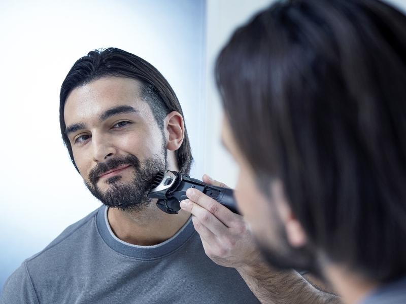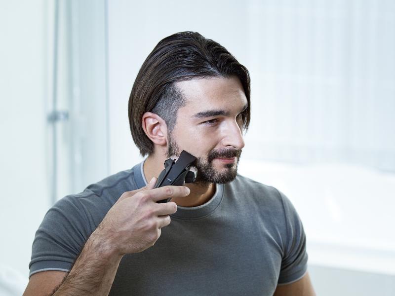 Nanopolirana rezila pod kotom 30° zagotavljajo temeljito britje ne glede na vrsto brade. Priloženi nastavek za prirezovanje omogoča oblikovanje vseh podrobnosti.