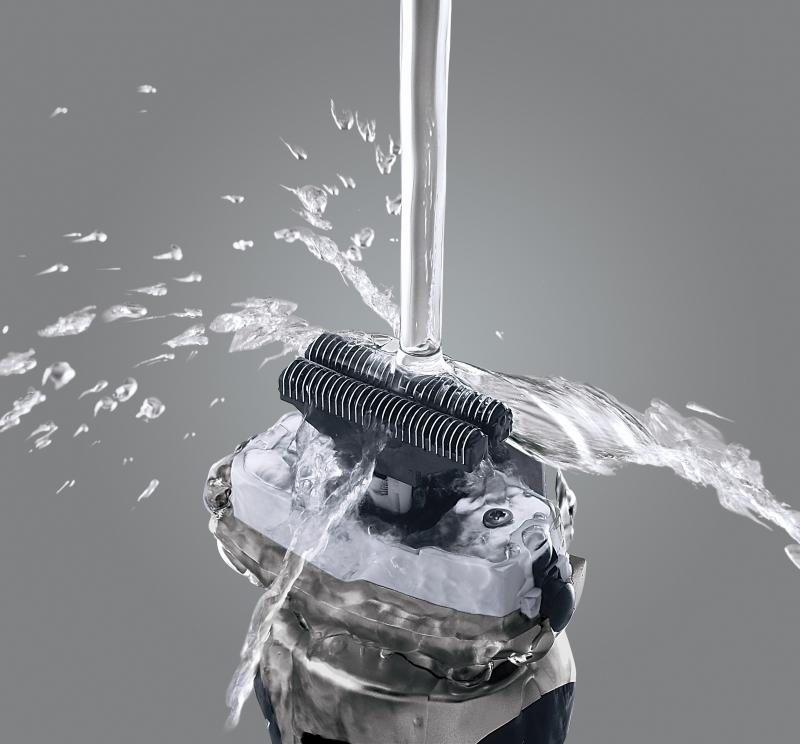 100-odstotno vodoodporen Čiščenje je priročno in traja le nekaj sekund, saj ga morate le temeljito sprati s tekočo vodo. Mokro/suho britje Uživajte v priročnosti suhega britja ali pa se razvajajte z gelom ali peno za britje in uživajte v popolnoma gladkem britju.