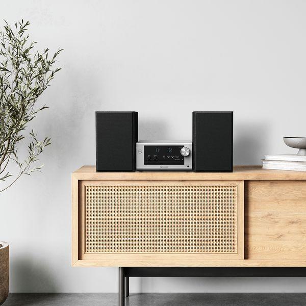 Brezčasna oblika, ki bo videti odlično na vsaki knjižni polici ali omari – z zvočniki, ki jih lahko namestite tako, da ustrezajo vašim potrebam. Odstranili smo vso odvečno navlako in pustili le najnujnejše, da smo ustvarili preprosto intuitivno krmilno površino z visokokakovostnim otipom.
