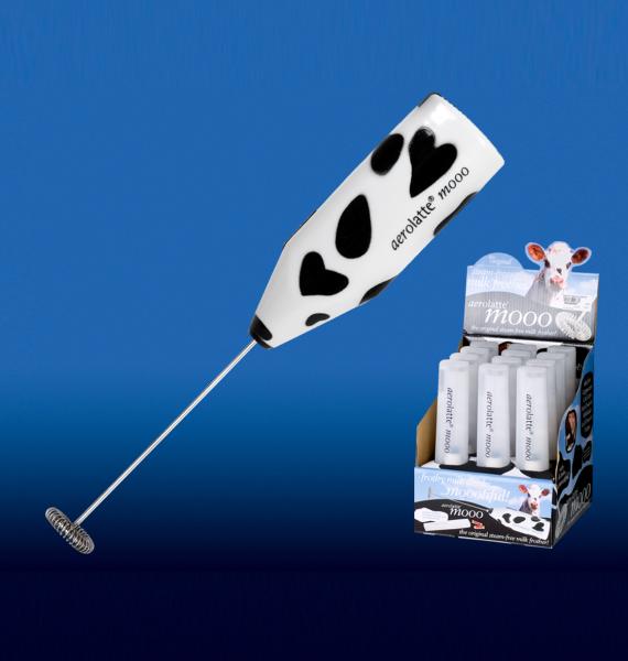 Baterijski penilec mleka "Aerolatte mooo" za pripravo odlične pene za pravi italijanski cappuccino s priloženim pokrovčkom.