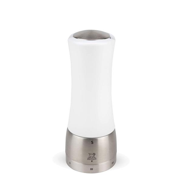 PEUGEOT MLINČEK ZA SOL MADRAS je izredno priročen pripomoček z ergonomsko obliko. Mlinček iz bukovega lesa je polakiran z belo barvo, eleganco pa mu dajejo še detajli iz brušenega nerjavečega jekla. Peugeot je znamka, ki je že več kot 160 let znana po oblikovanju mlinčkov za začimbe odlične kakovosti, ki jih cenijo največji svetovni kuharji. Zanje je značilna predvsem zanesljivost mehanizma, prilagojenega posameznim začimbam. Francoska znamka Peugeot Saveurs je ugledno francosko podjetje, specializirano za proizvodnjo in distribucijo visokokakovostnih kuhinjskih pripomočkov, ki sledi bogati dediščini znamke Peugeot, ki sega več kot 200 let nazaj in združuje vrhunsko oblikovanje, inovativnost ter vrhunsko kakovost. Njihov asortima vključuje široko paleto izdelkov, kot so mlinčki za poper in sol, kuhinjski pripomočki, posode za shranjevanje hrane in drugi specializirani kulinarični pripomočki. Peugeot Saveurs je sinonim za eleganco, funkcionalnost in vrhunsko izkušnjo v kuhinji, ki navdušuje tako profesionalne kuharje kot tudi ljubitelje kulinarike po vsem svetu.