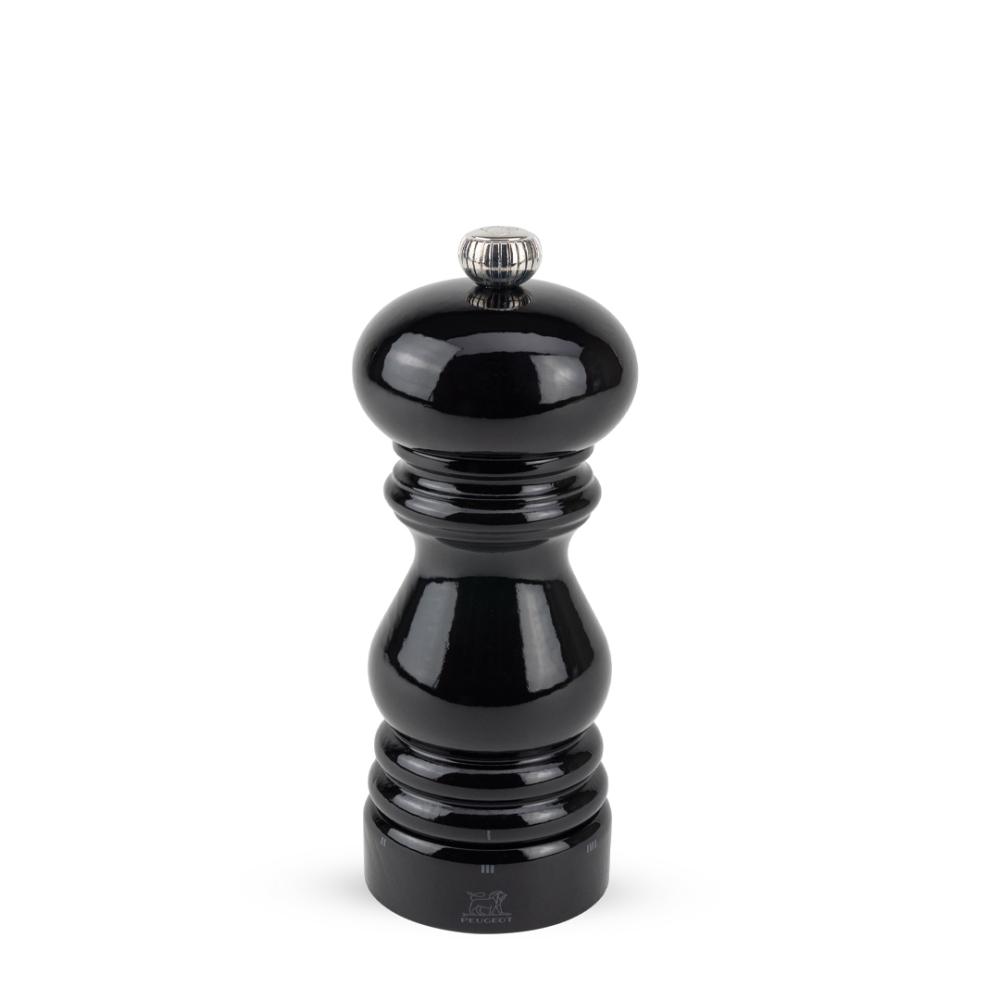 PEUGEOT ČRN MLINČEK ZA SOL PARIS je izdelan iz bukovega lesa z elegantno oblikovano silhueto, ki jo dopolnjuje srebrn gumb z vgravirano levjo glavo, ki je Peugeotov prepoznavni znak.
