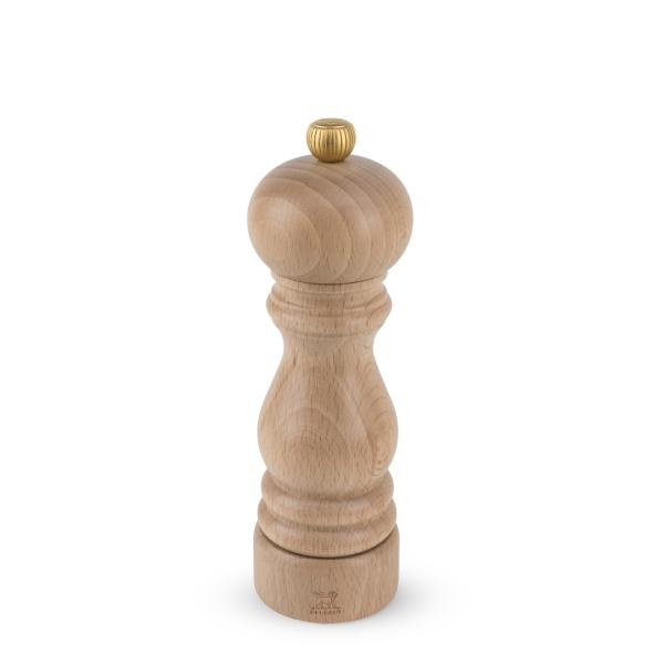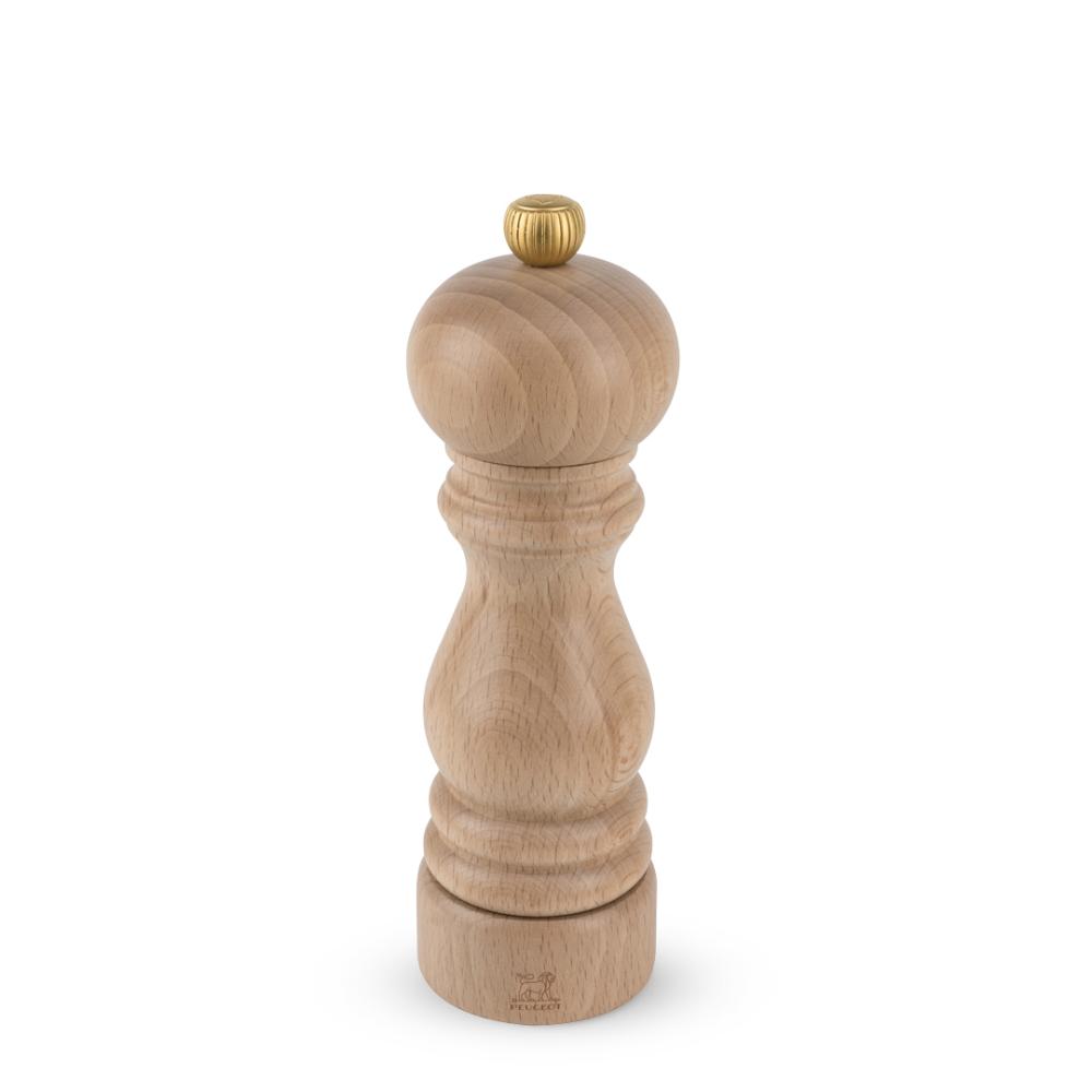 PEUGEOT MLINČEK ZA POPER PARIS NATUR je izdelan iz naravnega lesa z elegantno oblikovano silhueto, ki jo dopolnjuje zlati gumb z vgravirano levjo glavo, ki je Peugeotov prepoznavni znak.