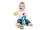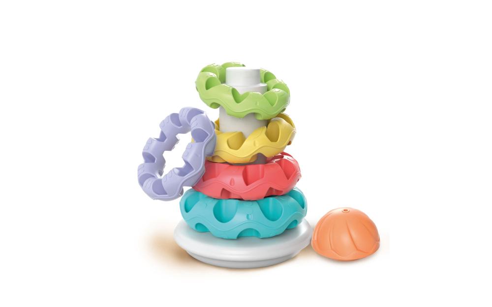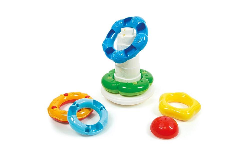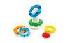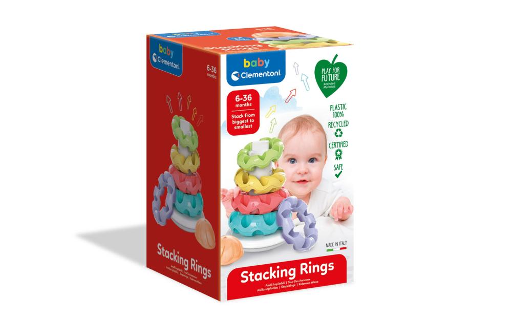 5 obročev različnih barv in oblik ter 1 pokrov. Spodbuja razvoj logičnih, ročnih,senzoričnih, domišljijskih in psihomotoročnih sposobnosti otrok. Priporočamo otrokom od 6. do 36. meseca starosti.