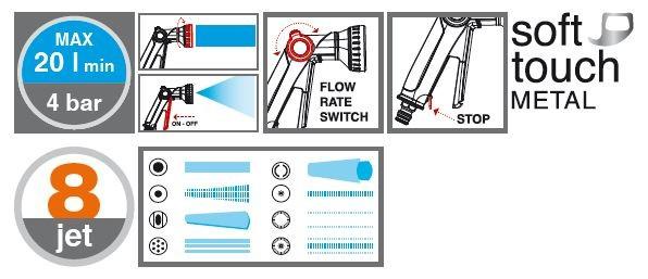 Izbirnik "3 JET": fiksni, ventilatorski in stožčasti curek