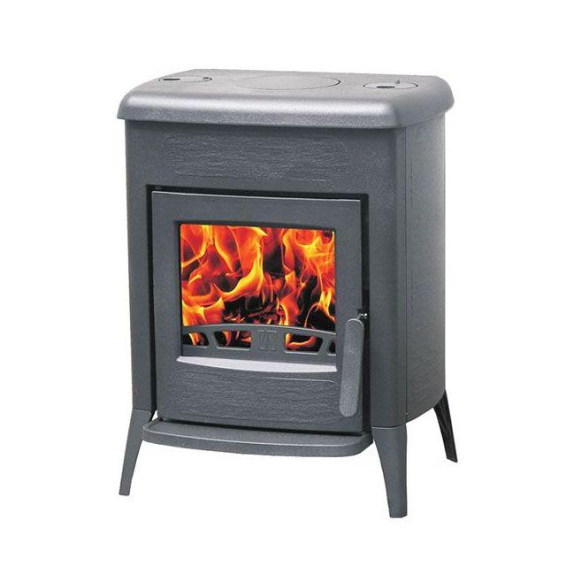 Kamin je izdelan iz kvalitetne sive litine, obarvan s črno toplotno obstojno barvo, ki daje proizvodu bogat videz. Skozi velika ostekljena vrata se vidi celotno kurišče, kar daje popolno vzdušje odprtega ognja.