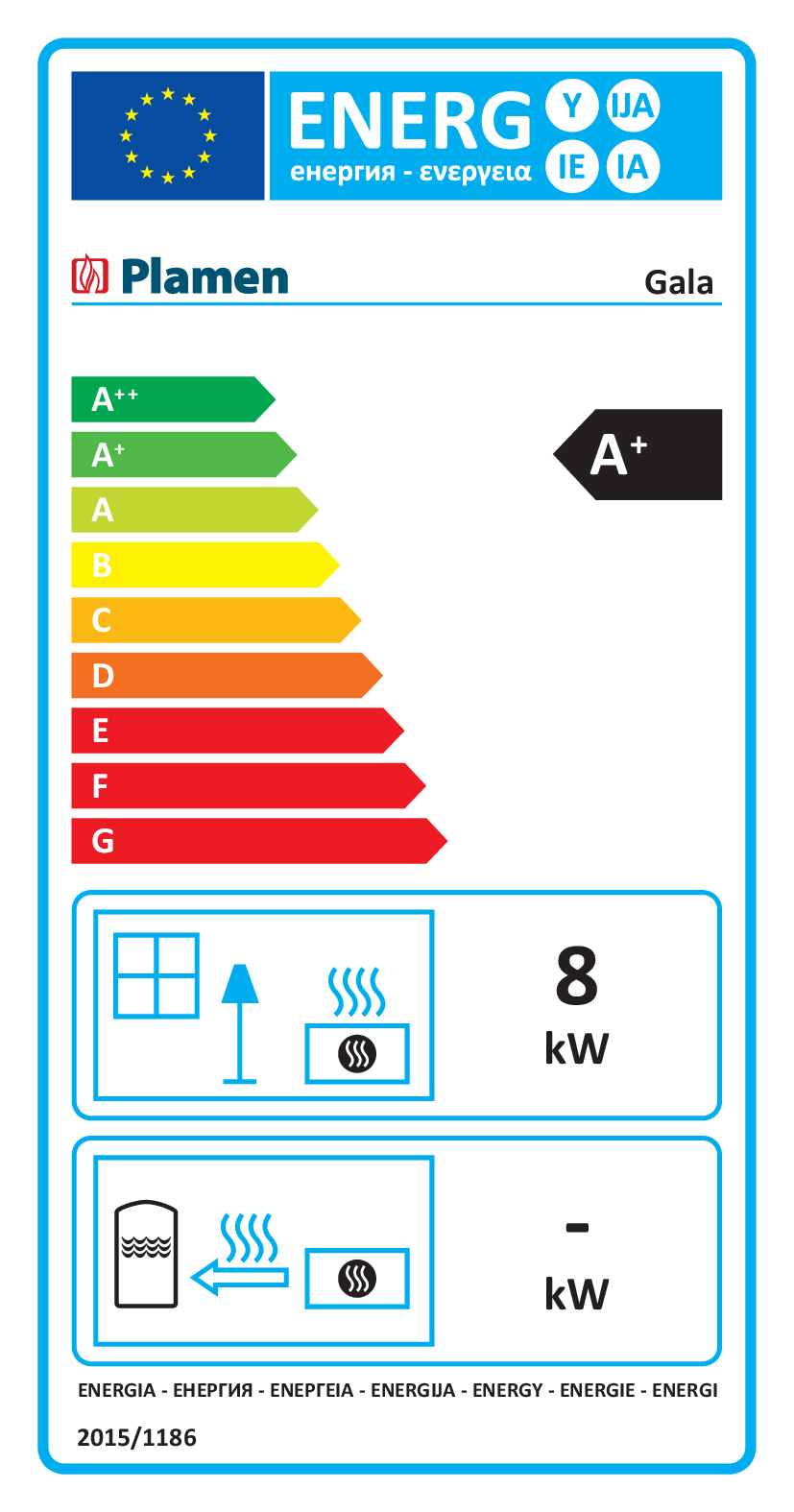 - Minimalna razdalja od vnetljivih materialov: Spredaj: 1200 mm, Bočno:
