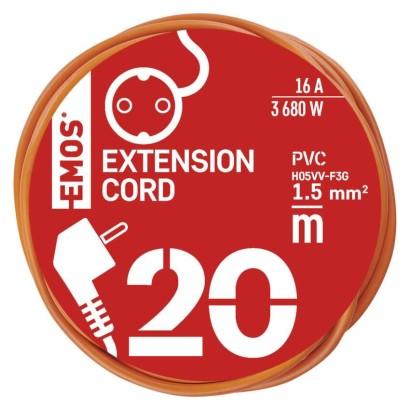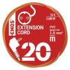 Trožilni podaljšek 20m / 1 vtičnica / PVC / 230V / 1,5 mm2