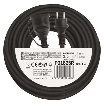 Zunanji podaljšek 25 m / 1 vtičnica / črni / guma-neopren / 250 V / 2,5 mm2
