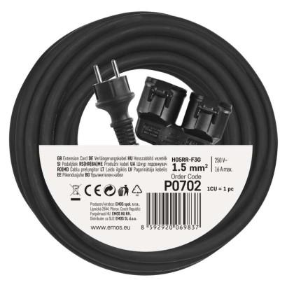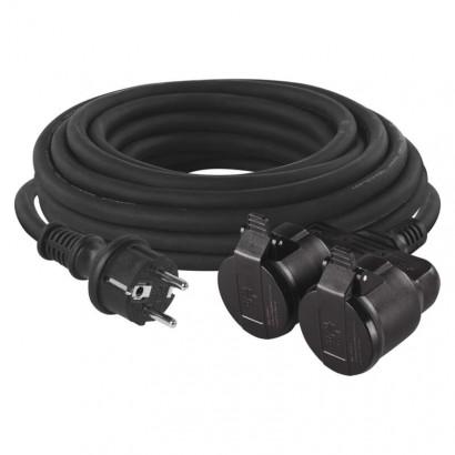 Zunanji podaljšek 15 m / 2 vtičnici / črni / guma / 250 V / 1,5 mm2