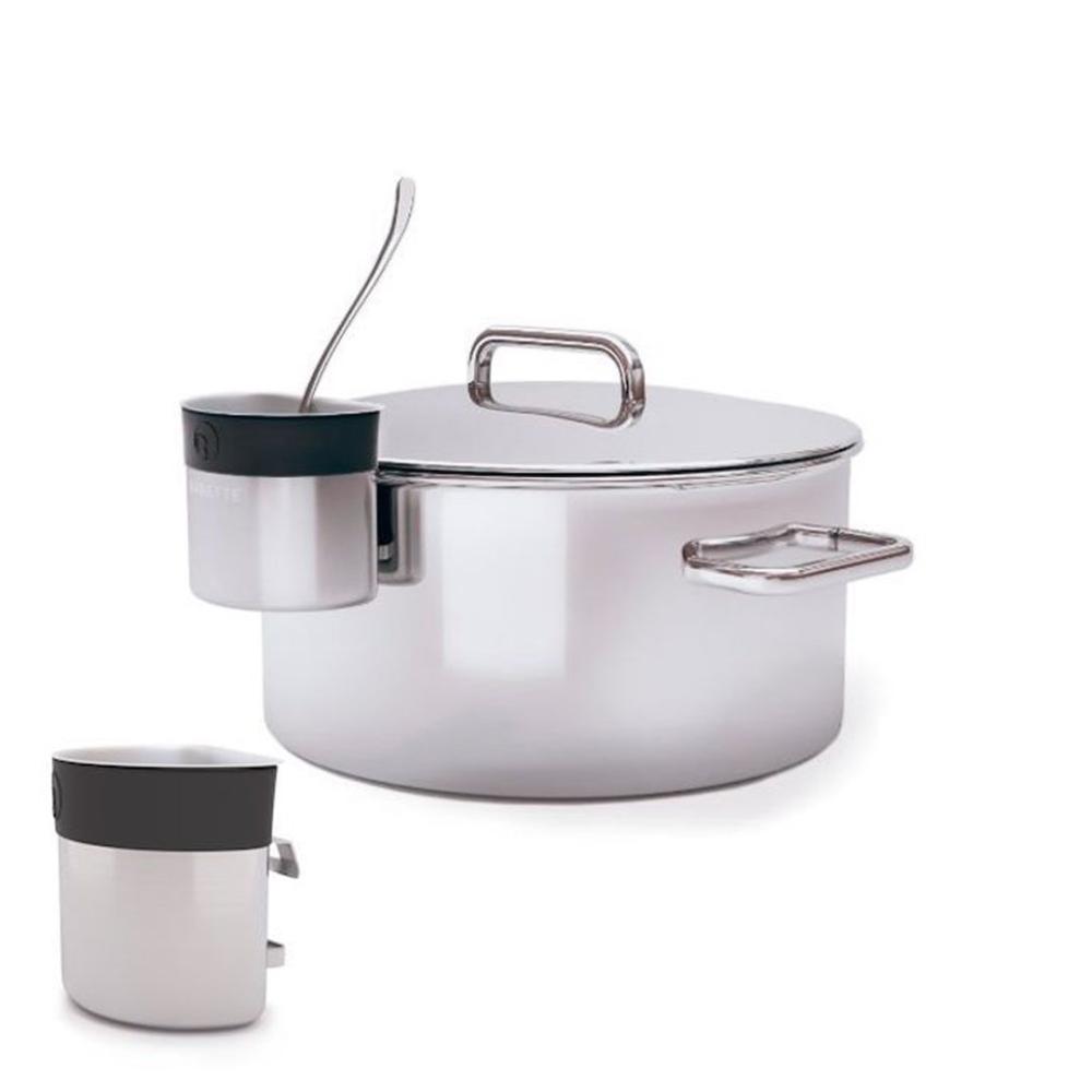 Ta nosilec oz. držalo enostavno obesite na rob kozice, ponve ali žara in si tako olajšate delo v kuhinji. Med pripravo hrane pustite vilico ali žlico počivati v njem in tako preprečite nered na delovni površine in dodatni uporabi pribora. Kavelj na zadnji strani lahko prilagodite višini posode. Silikonski pas ščiti vaše roke pred opeklinami.